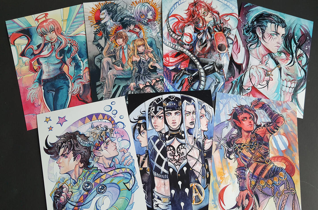 ● Watercolor illustrations made into prints, stickers, keychains, button pins